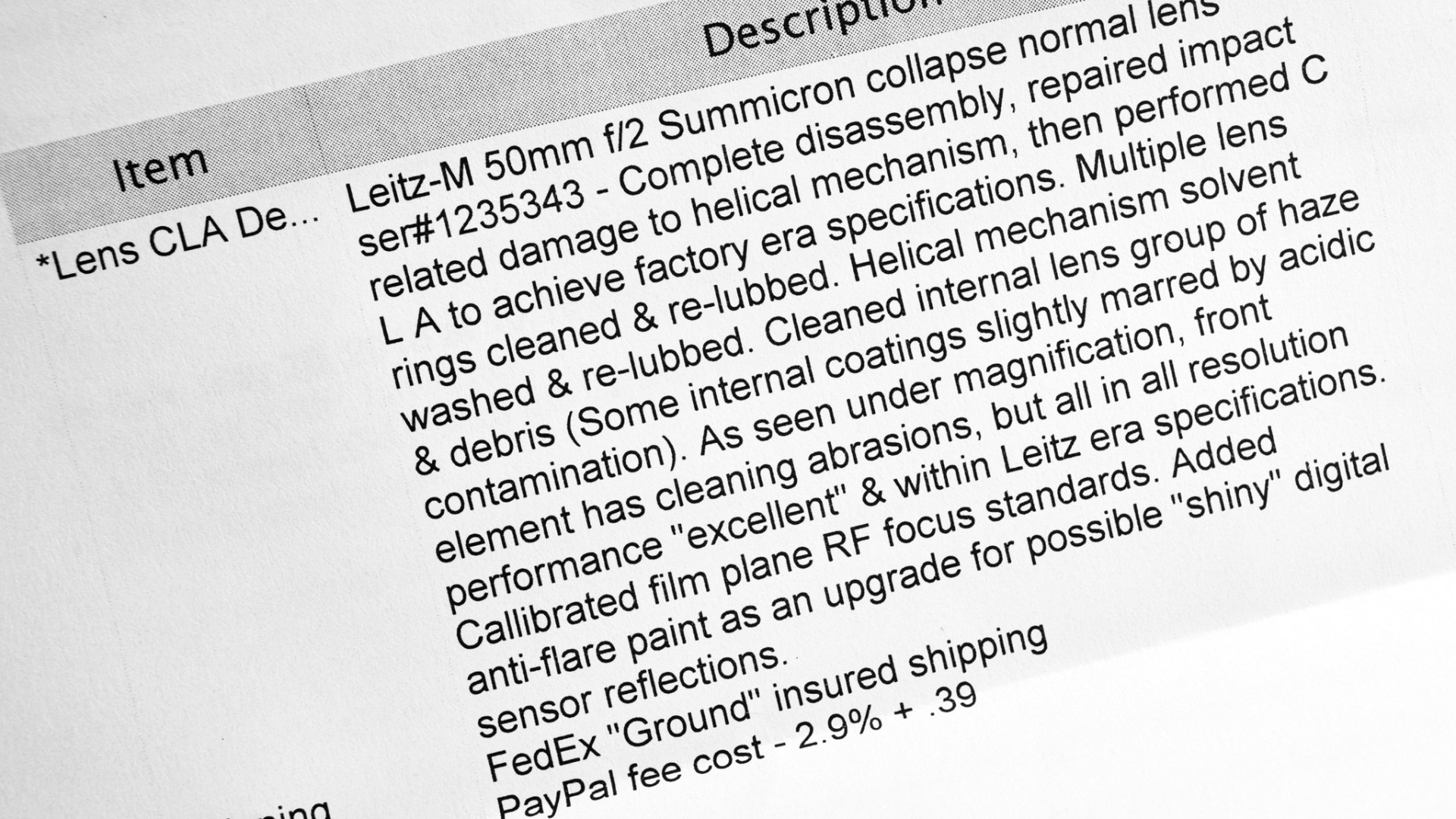 About 6 months ago I dropped my camera with the Summicron 5cm (50mm) 1:2 Collapsible Lens on it. The lens sustained damage. I sent it to TLC Camera Repair a couple of months ago and received it back on Saturday. I have always liked the rendering of this lens and I hope all will work well now. The wrapping around the lens had 3 notices I will share here. I am going shooting in the morning using the lens paired with the Voigtlander R3M and Cinestill BWxx film. I will post the results.