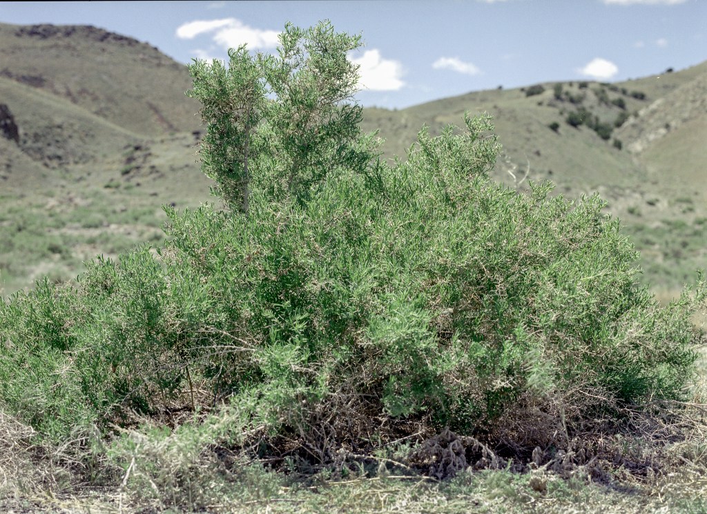 The plant above is Shadescale. Sagebrush and Shadescale share the same affinity for the Great Basin, but in more alkaline areas, only Shadescale can survive.