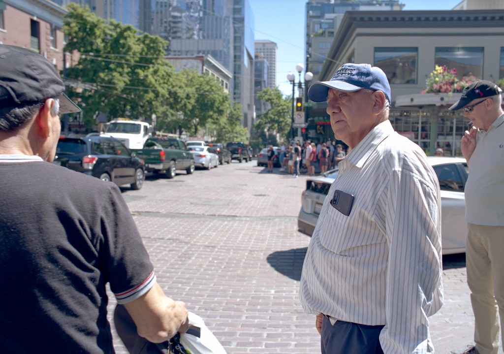 A month ago, I went to Seattle with my Pentax 645 camera. It is a large manual focus camera. I wanted to see if I could use it on the streets of Seattle. I first shot a roll of Kodak 400TX. None of the images were in focus. Lifting the camera to my eye and quickly focusing proved to be difficult. I next loaded the camera with a roll of Kodak Portra 800 color film. On this second roll, I was able to achieve focus on a few of the shots.