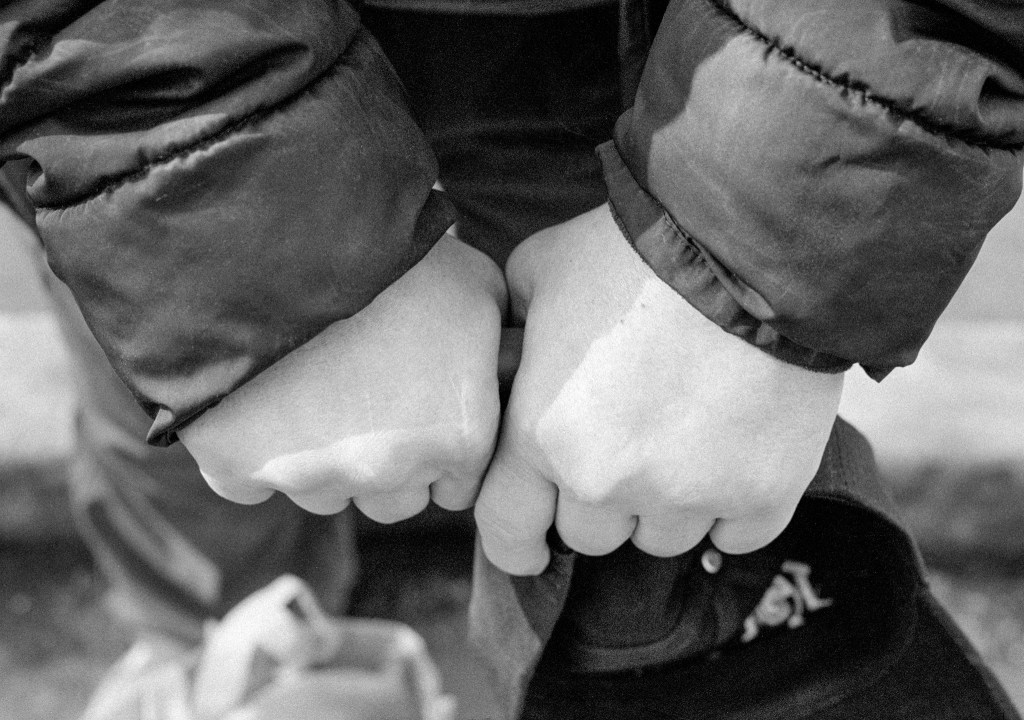 Up to this point, I had only the image of the back of the Security Guard. I wanted people’s faces. Ted told me he wanted that too, but one must work up to the face. He said, “you have the feet; (oh yes, the bus stop image). Now you need the hands.” I wanted to tell him what he needed, but I remembered to be nice in public. I approached a young man and asked if I could photograph his hands. He put his hands up a bit but did not open them. I took the picture. Ted remarked, “you did not get his fingers; they are the important part!” “Forgive me. I am new at this foot, hands, and face routine,” I replied. He nodded, and we walked on.
