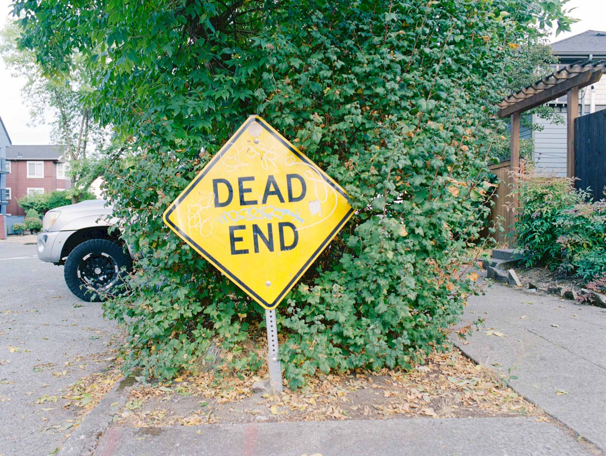 No story, but words in every photograph. The first photograph has a hint of inclusion. Great framing work again. Nice to see you getting success with these self developed colour negatives. All the best.