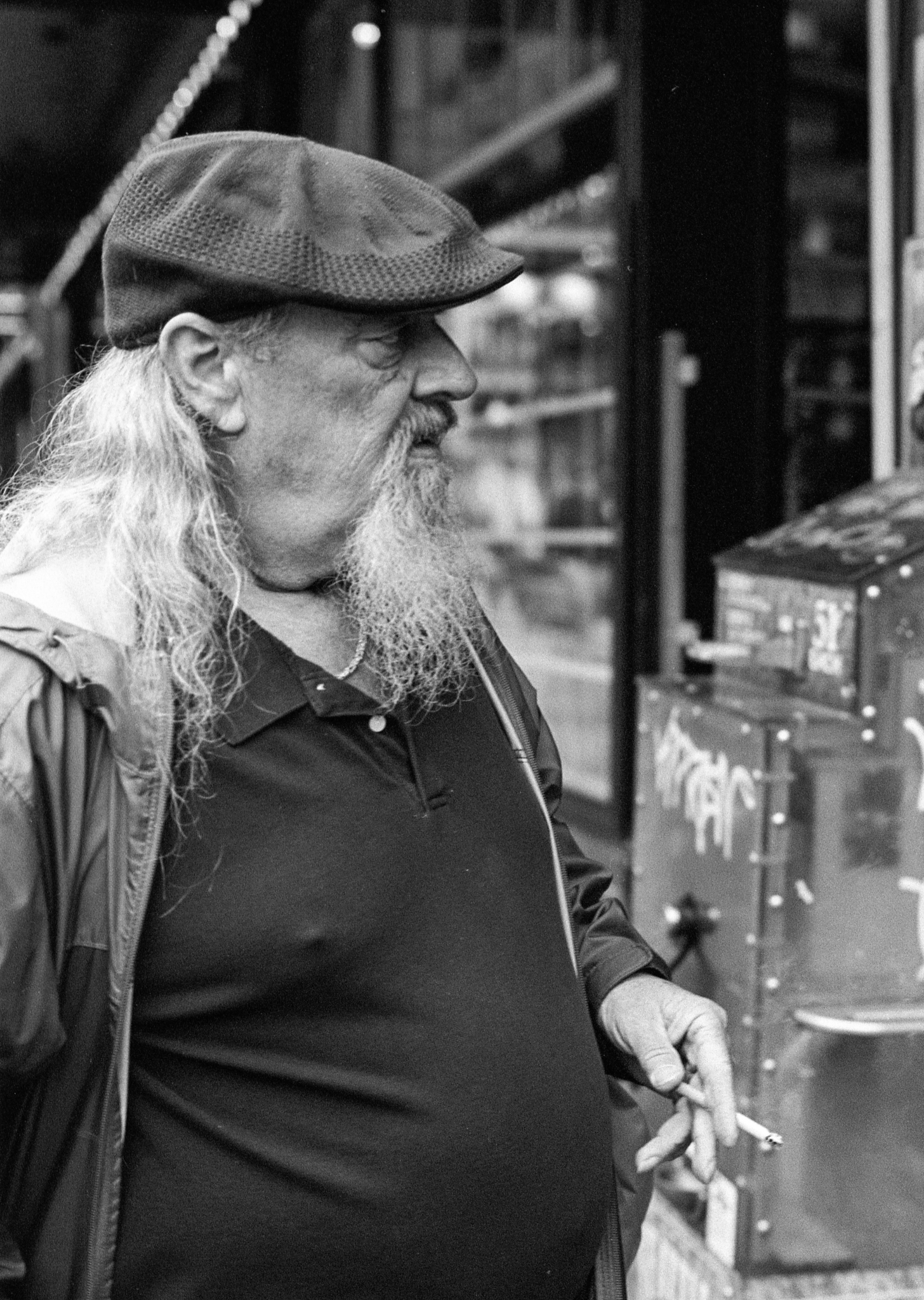 The day was cool and cloudy. I arrived by train a little after 10 AM. I brought two rolls of film: a roll of Kodak 400TX, which I pushed one stop, and a roll of Kodak Portra 160. Since buying the lens a couple of months ago, I have had a problem manually focusing the 58mm lens, so I concentrated on that lens throughout the three-and-a-half hours I was downtown.