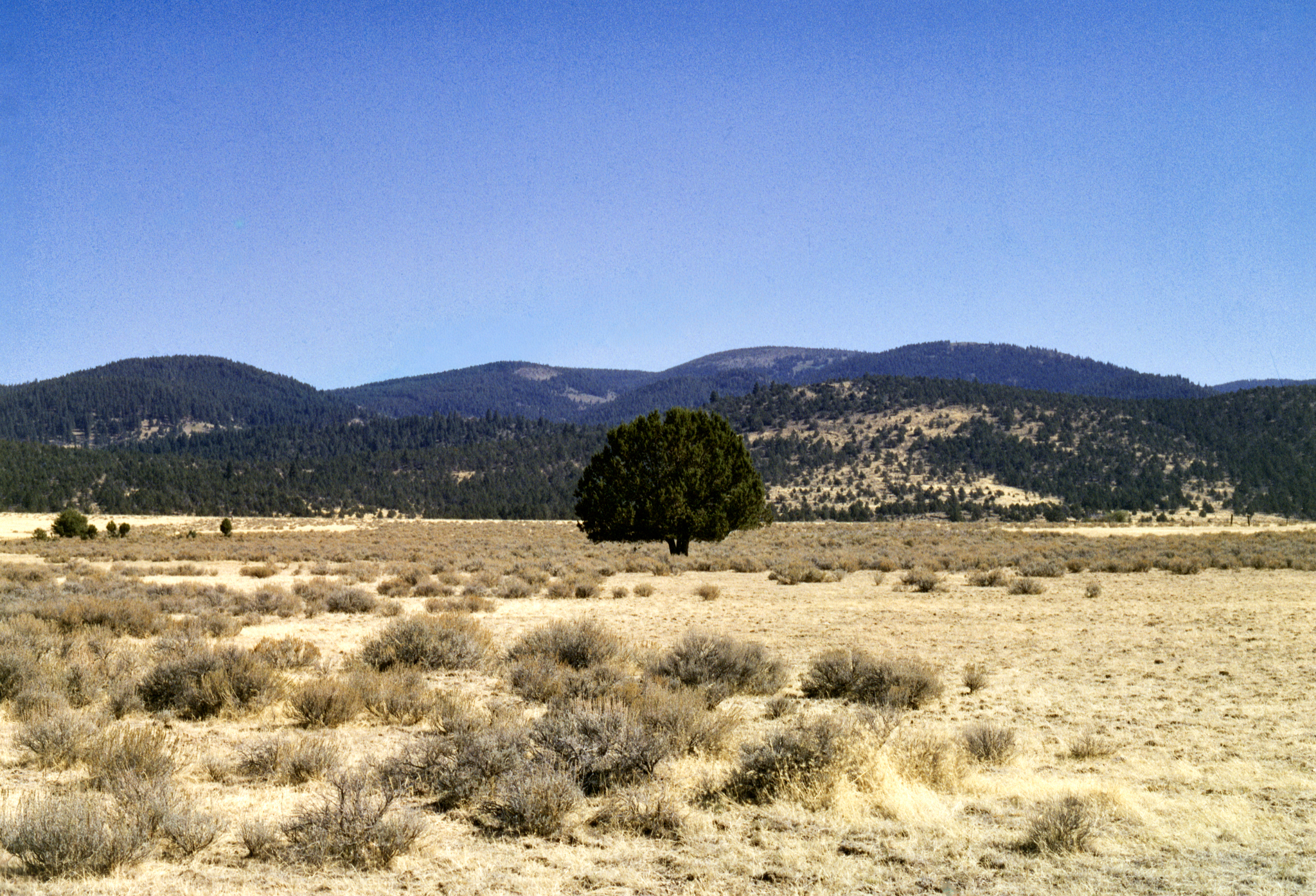 This tree is a Western Juniper (Juniperus occidentalis). The trees have been moving into lower areas and are disrupting the original habitat (https://onda.org/the-juniper-paradox/). Here is another view: (https://gardenriots.com/2024/10/20/the-much-maligned-western-juniper-the-role-of-juniperus-occidentalis-in-central-oregon/). With research, one finds many diverse opinions about what, if anything, we should do to restore the former range of the tree.